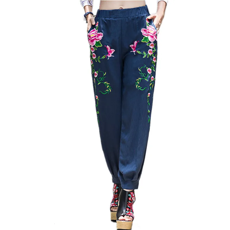 Best Product 2019 Summer Fashion Embroidery Pants Women Vintage Harajuku Brand Elegant Ladies Trousers Casual Wi